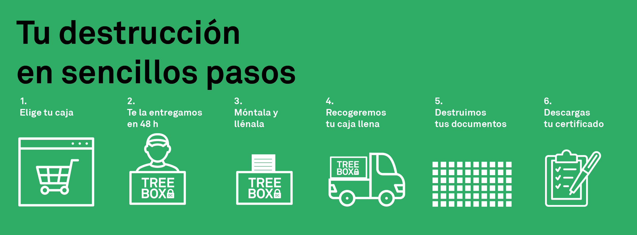 Con un solo pago tienes todo el servicio incluido. Desde la entrega de la caja hasta la destrucción garantizada de tus documentos, sin ningún sobrecoste extra.
